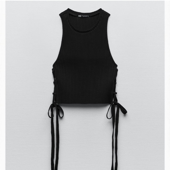 Zara Ribbed Crop Top with ties on the side (brown top pictures are references to show how it looks like in black)
