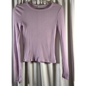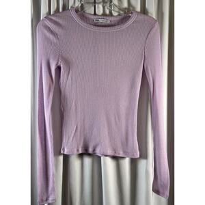Zara Ribbed Cropped Lightweight Long Sleeves T-Shirt Lavender S Casual 73-39