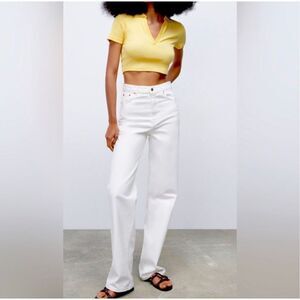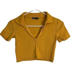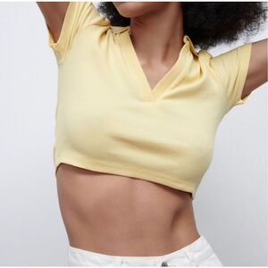 Zara Ribbed Cropped Polo Top size S