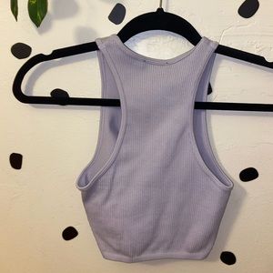 Purple ribbed cropped racer tank