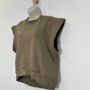 Zara - Ribbed Hemline Short Sleeve Gray Green Sweatshirt Blouse Size Small