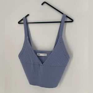 Zara Ribbed Knit Deep V Neck Cropped Tank