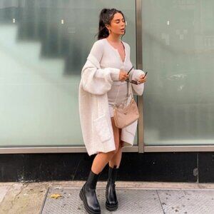 Zara Ribbed Knit Long Sleeve Jumpsuit Romper Cream Blogger Fav Sz Small