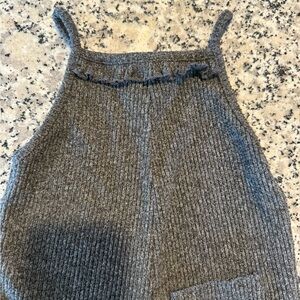Cozy gray ribbed knit pants with a front pocket. Perfect with a tshirt or long sleeve shirt underneath.