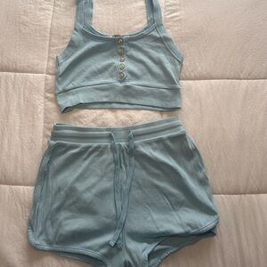 Zara ribbed lounge set, size small, Sold-out. Worn once in perfect condition. Great for warm weather! Can be used to lounge, bikini cover-up, etc.