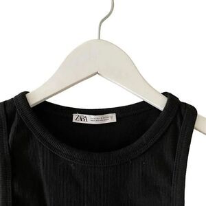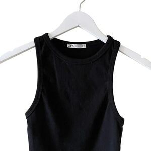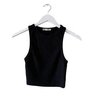 Zara Ribbed Mock Neck Black Racer Back Soft Cotton Cropped Women’s Tank Top SZ S #1712