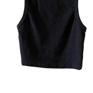 Zara Ribbed Mock Neck Black Racer Back Soft Cotton Cropped Tank Top SZ S #1712