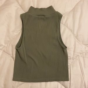 Ribbed tank top. Mock Neck. Has a small hole as purchased - never worn.