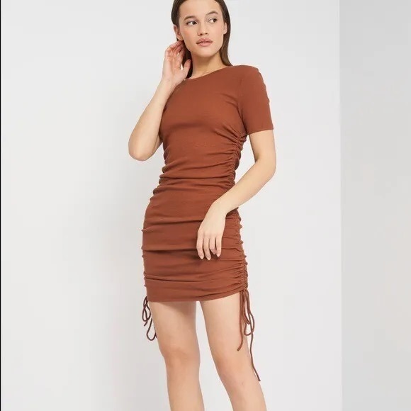 Zara Ribbed Ruched Side String Mini Dress