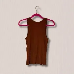 Sleeveless ribbed tank. Zara XS. Dark rust/brown color. The material feels a little bit more upscale, could easily dress this up for work or be worn casually!