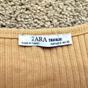 Zara Ribbed Tan Button-Up Top Size: Small