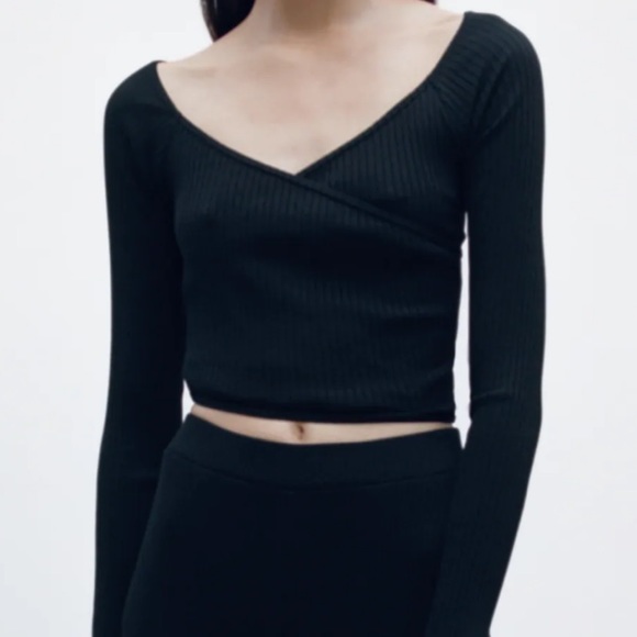 Short Rib Street Style V-Neck Long Sleeves Plain Cotton.