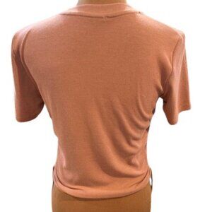 Zara Ribbed and Side Ruched Short Sleeve T-Shirt in Brown – Size Large