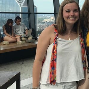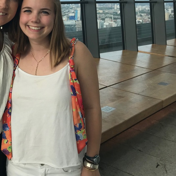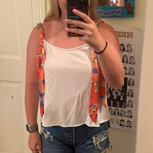 Super cute white tank with colorful ribbon straps!
