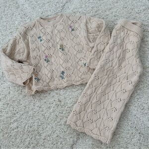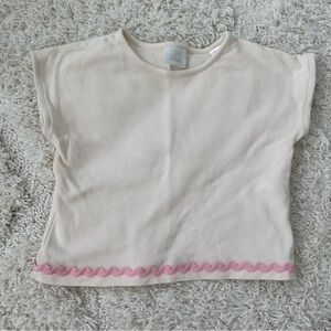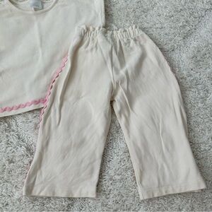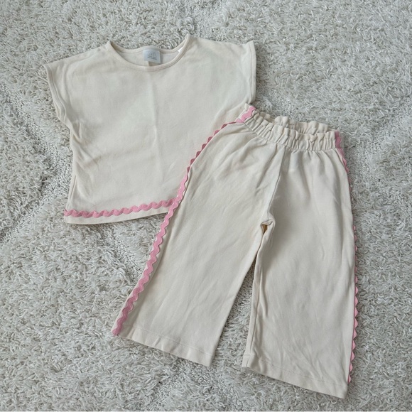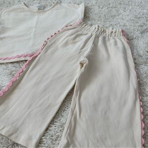 Like new! Zara Ric Rac wide leg pants set. Matching short sleeve top and pant, with pink Ric Rac details.