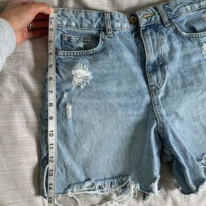 Zara Ripped High Rise Denim Shorts. Size 4. Worn 2x on vacation but too high rise for me. Inseam around 4”