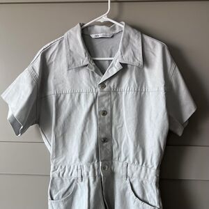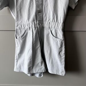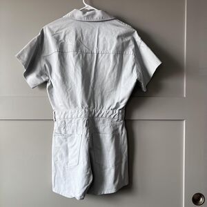 Zara Romper Womens Medium Blue Gray Short Sleeve Button Utility Pockets Shimmer