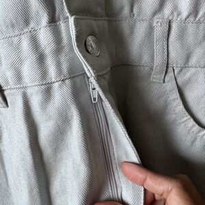 Closure: Hidden side zip with snap at waistband; ZARA-branded metal hardware