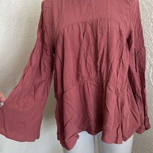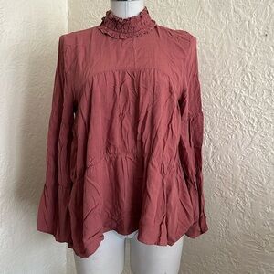Zara Rose Pink Smocked High Neck Tiered Bell Sleeve Top Blouse Small