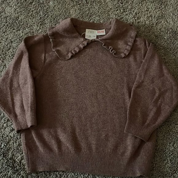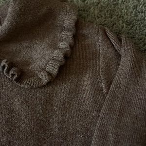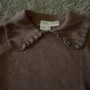 Zara rounded collar sweater in a buttery knit. The chestnut color is the perfect neutral and the ruffle rounded collar is on trend. Only worn a few times, like new.