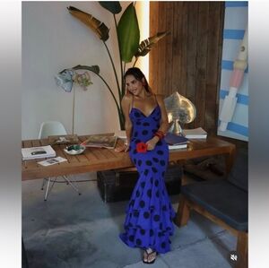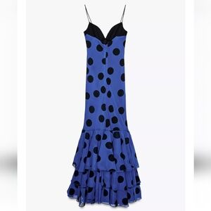 NWT Zara Polka dot ruffled dress. Long dress with V- neck and thin straps. Ruched detail on the chest. Back hidden in-seam zipper closure. Size XS. Retail price is $269. Sold out Item.