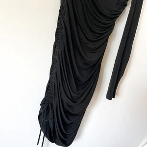 Zara Ruched Asymmetrical One Arm Stretch Mini Dress Black Sz S