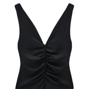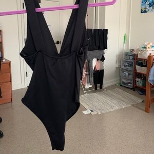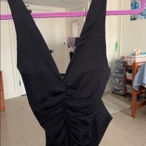 Super cute Zara “Ruched Stretched Bodysuit” plunge black bodysuit. Perfect for a night out! Really stretchy material!