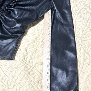 Zara Ruched Front Faux Leather Black Blouse Top Size XS Button Front