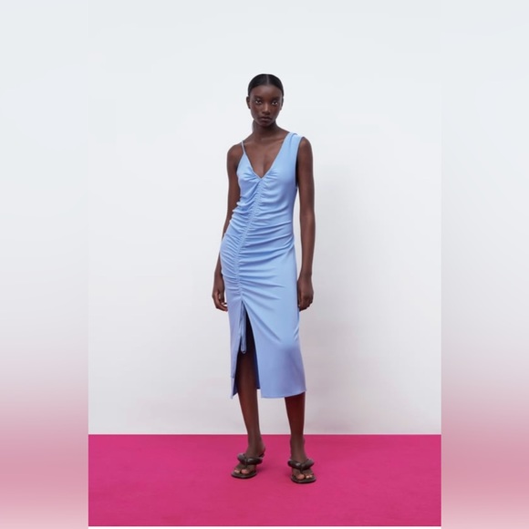 Zara Ruched Light Blue Dress S