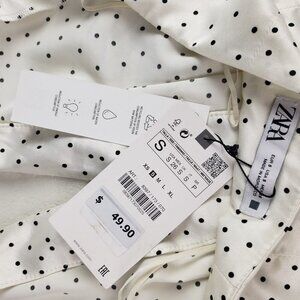 Zara Ruched Mini Halter Dress Womens Small White Black Polka Dot V Neck NEW