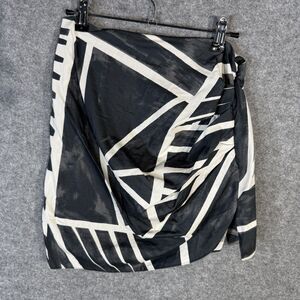 Zara Ruched Mini Skirt Dark Gray Black White Striped Pattern Women's Size M