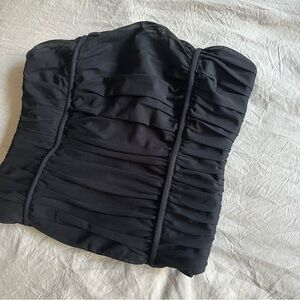 Zara Ruched Strapless Tulle Tube Top Black Medium