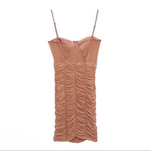 Zara Ruched mini dress, Interior lining, Adjustable straps, Back Hidden zipper Closure. Approx measurements Pit to Pit 18", Length 32. Color is Champagne.NWT