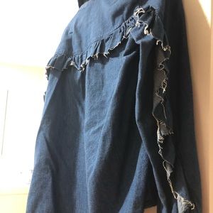 NWT very cool ruffle denim button down