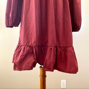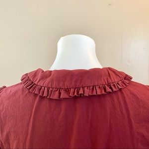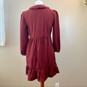 Worn one time, in perfect condition! Super cute ruffled dress with collar and buttons. Elastic around wrists. Loose fitting.