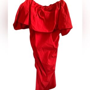 Straight neck elastic dress with ruffle. Ruched trim detail