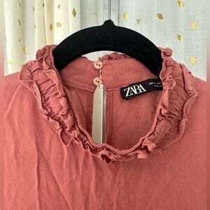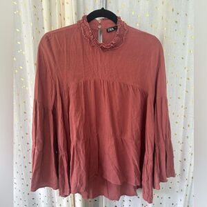 Zara Ruffle Mocked Neck Bell Sleeve Oversized Flowy Tiered Trapeze Blouse M