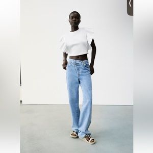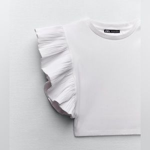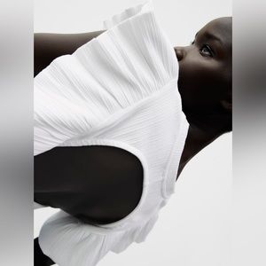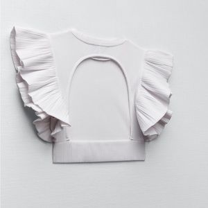 Zara Ruffle Ribbed Open Back Blouse - NWT