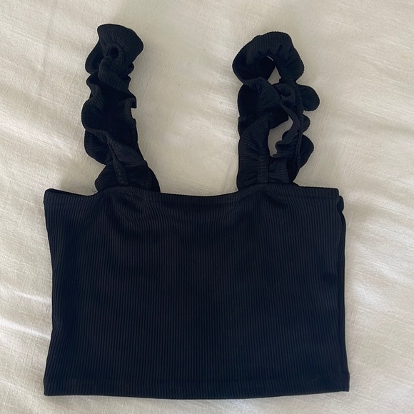 Size Small. Zara ribbed crop tank top with ruffle straps. Worn once, like-new.