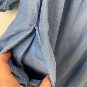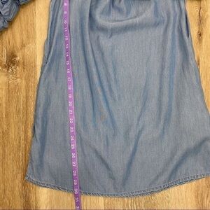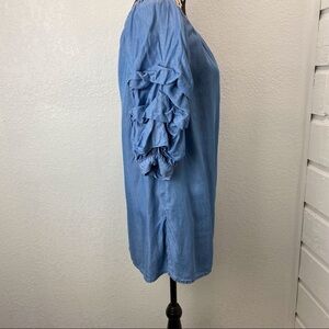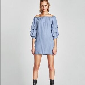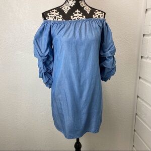 Zara Ruffle Sleeve Chambray Denim Off Shoulder Dress