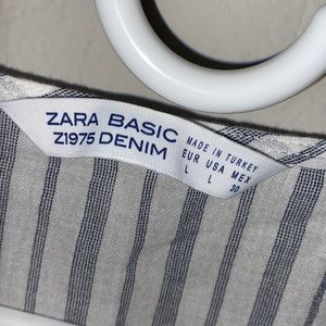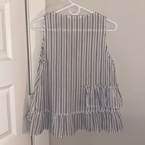 Zara ruffle tank in a blue and white stripe. Breezy, linen-like feel. NEW AND NEVER WORN!
