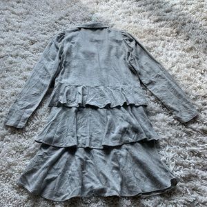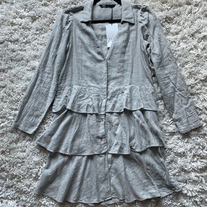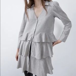 NEW ZARA Woman Gray LONG RUFFLED SHIRT TRF V-NECK Long Sleeve