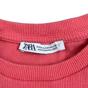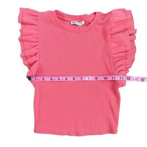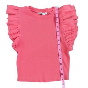 ZARA Pink Ruffle Short Sleeve Top. Ribbed and has stretch to it! Super cute for summer with denim shorts or skirt🦩