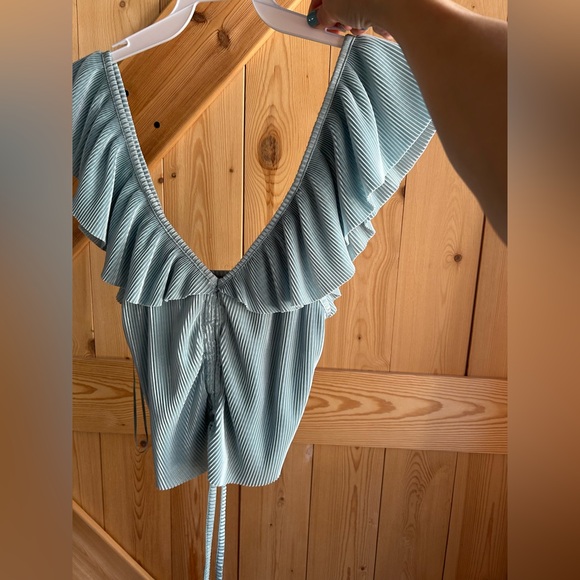 Elegant ruffled top in a soft blue shade. Perfect for any occasion. Like new, worn 2 or 3 times