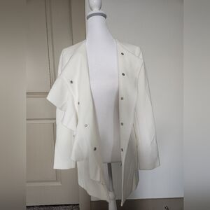 Elegant ruffled coat from Zara! New without tags, satiny inside, shoulder pads for more structure and pockets. Super classy and stunning piece