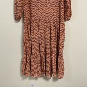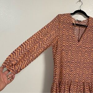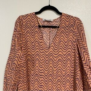 Zara Ruffled Puff Sleeve MIDI The Giny Dress Abstract wavy Print Size XS