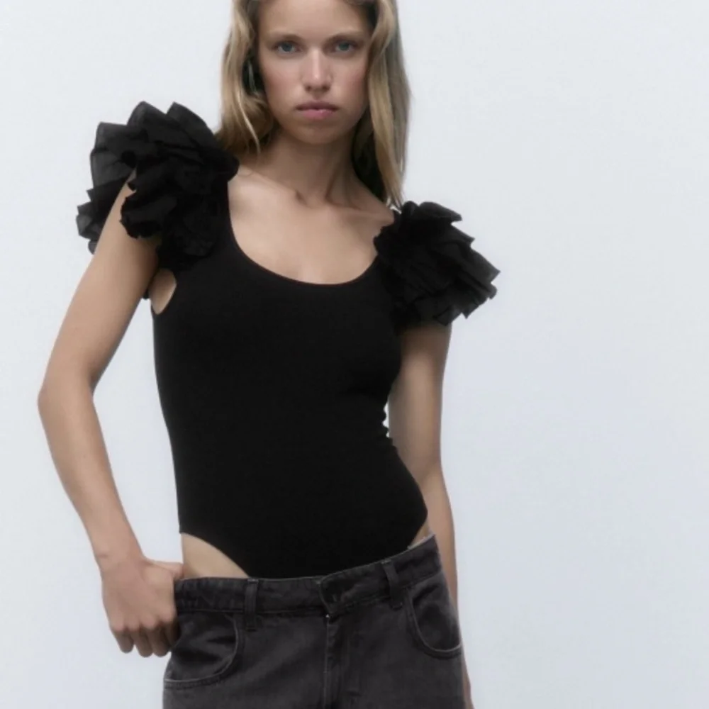 Zara Ruffled Ribbed Bodysuit