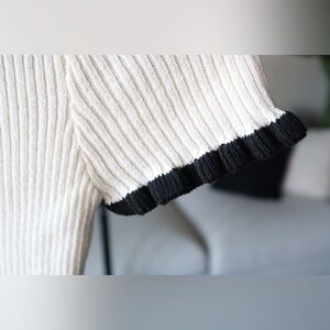Zara Ruffled Ribbed Crop Top- Small. New without tags. Never worn. Ecru (creamy white) with black trim.