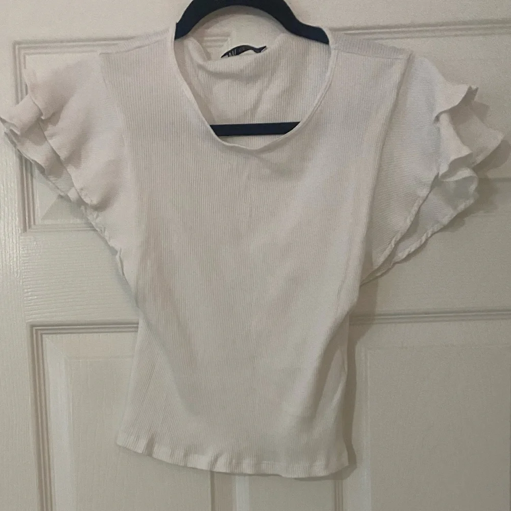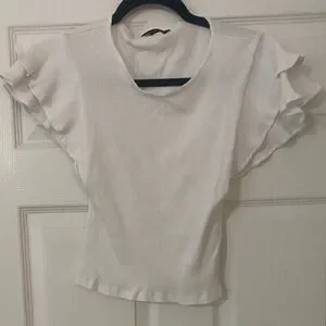 SLIM FIT - ROUND NECK - REGULAR LENGTH - SLEEVELESS Sleeveless round neck T-shirt with ruffle trim