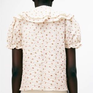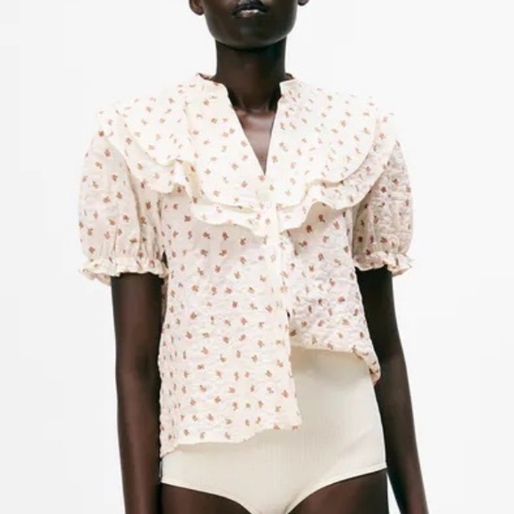 In flawless condition. Short sleeve shirt with ruffles and rose pattern.